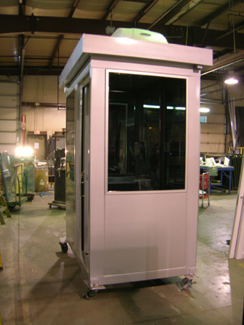 This guard booth was built to specifically take the sun and heat in the City of Las Vegas, NV. The 4 x 6 steel guardshack includes Low E glass, tinted glass, increased insulation and an upgraded air conditioner.